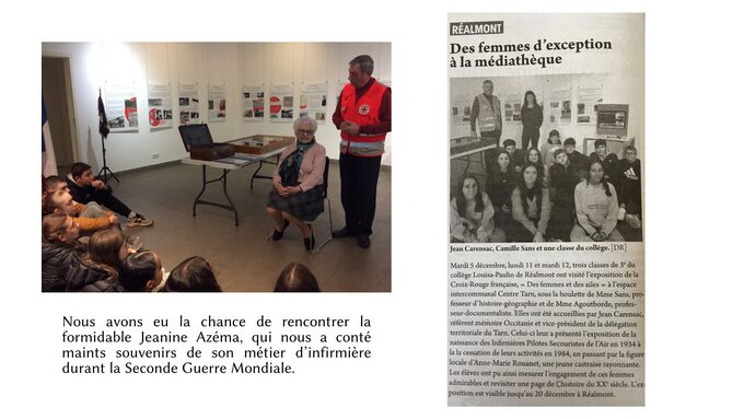 Retour sur la rencontre entre les classes de 3èmeB, C et D, M. Carensac, vice-pésident de la Croix rouge du Tarn et Mme Azéma, infirmière pendant la Seconde guerre mondiale, organisée par Mme Agoutborde et Mme Sans.